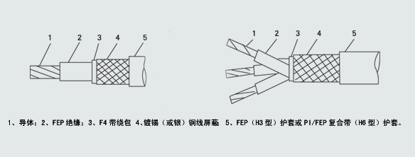 氟塑料(聚全氟乙丙烯)绝缘及护套耐高温控制电缆
